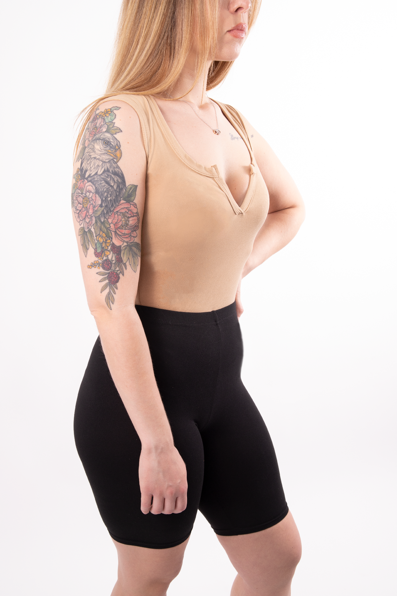 Détails du produit : Body sans manches avec décolleté fendu. Modèle sans couture et fermeture à bouton-pression en bas.